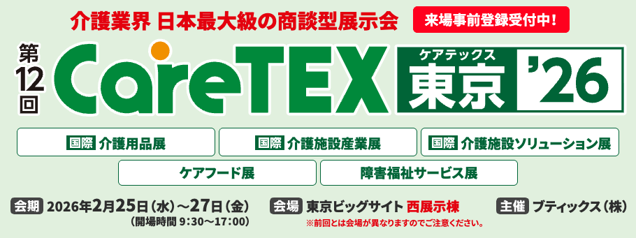 株式会社StarBoardは、2026年2月25日(火)〜27日(木)に東京ビッグサイトで開催されるCareTEX東京2026 に出展いたします。