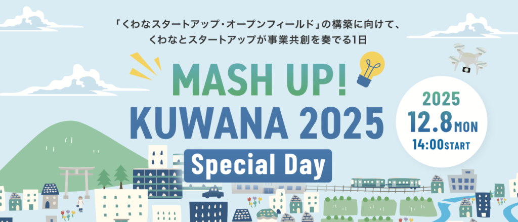 くわなスタートアップ・オープンフィールドの構築を目指し、桑名市とスタートアップが共創で未来を切り拓くイベント 「MASH UP! KUWANA 2025 Special Day」 が、今年も開催されます。