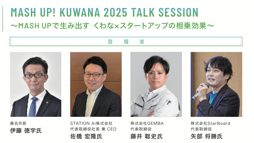 《MASH UP で生み出す くわな×スタートアップの相乗効果》 をテーマにしたトークセッションに登壇いたします。